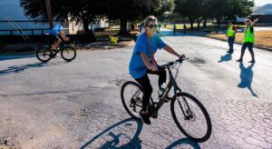 Tamara and Phillip Boone direct bike riders during the 2025 Sloan Everett Pure Country Pedal Memorial Bike Ride, which took place in October. (Photo by Tony Pilkington/Breckenridge Texan)