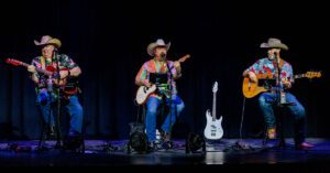 Bubba Stephens, Doc Wesson and C.S. Sturgeon — aka Three Fools on Three Stools — performed in the National Theatre of Breckenridge on Nov. 8. The next concert will be on Dec. 6, featuring Maggie Amini and Kevin Singleton. (Photo by Tony Pilkington/Breckenridge Texan)