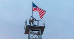 This week, some of his grandsons gathered at the oil derrick to replace the American flag at the top.