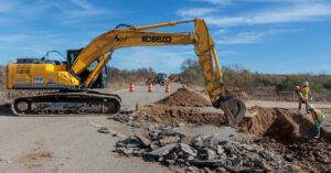 A work crew was digging out a 16-inch pipe near the water treatment plant to replace a broken valve that was stuck in the “closed” position, preventing treated water from getting to the City of Breckenridge water towers. (Photo by Tony Pilkington/Breckenridge Texan)