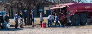 Local residents line up in the Breckenridge City Park to get non-potable water for non-drinking uses during the water outage. (Photo by Tony Pilkington/Breckenridge Texan)