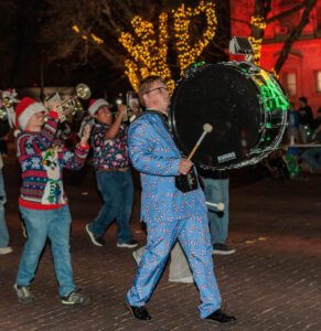 The Breckenridge High School marching band added some holiday spirit to the Christmas Parade. Click here for more pictures. (Photo by Tony Pilkington/Breckenridge Texan)