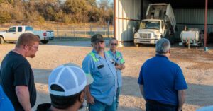 Billy Smith, center, water distribution/collections foreman for the City of Breckenridge, and other Public Works employees were on hand at the City facilities on North Dubois to provide information about the work that takes place in the shops located there. (Photo by Tony Pilkington/Breckenridge Texan)