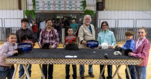 Cutline, top photo: Showman Judge Ingrid Tusa, right, and Rabbit Judge Tony Bell, second from right, talk the participants the Rabbit Senior Showmanship contest. Competing for the award are, from left, Adalyn Kinder, Sawyer Langham and Collom Perkins, who received the award. Click here to see more photos the stock show. (Photo by Tony Pilkington/Breckenridge Texan)