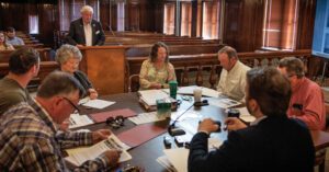 Kenneth Raney speaks to the Stephens County Commissioners Court on Feb. 24, 2025, about installing a monument featuring the words of the letter that Lt. Col. William Barret Travis sent to Sam Houston on Feb. 24, 1836, asking for help in protecting the Alamo from the Mexican army. The commissioners approved the monument. (Photo by Tony Pilkington/Breckenridge Texan)