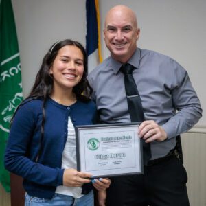 Ninth-grade student Ellisa Duran was honored as the Student of the Month by BHS Principal Paul Armstrong. (Photo by Tony Pilkington/Breckenridge Texan)