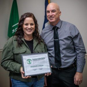 Ag teacher Stephanie McLane, left, was honored as the BHS Staff Member of the Month at the Jan. 19 BISD School Board meeting by Principal Paul Armstrong. (Photo by Tony Pilkington/Breckenridge Texan)