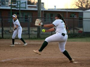 Raegan Robinson pitches during a recent Lady Bucks softball game against the Cisco Lady Loboes. (Photo by Alex Kielar/Breckenridge Texan)