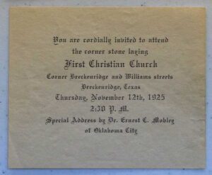 After Breckenridge’s population increased due to the oil boom in the early 1920s, the members of First Christian Church decided to have a new building constructed across the street, at the current location of 101 E. Williams St.