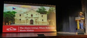 Also, earlier this year, the Picketville Chapter of the Daughters of the Republic of Texas sponsored a showing of the 2004 movie “The Alamo” at the National Theatre in Breckenridge. Alamo historian Kolby Lanham introduced the movie and provided a historical analysis of the movie, talking to those in attendance about what scenes in the movie were accurate and which ones were exaggerated for the sake of movie-making.