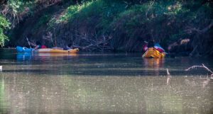 Boaters paddle in Gunsolus Creek, near the point where the City of Breckenridge discharged “partially treated” wastewater after a clog at the treatment plant required the sludge to be discharged into the creek. The boaters indicated they were unaware of the situation and moved past the area when informed. (Photo by Tony Pilkington/Breckenridge Texan)