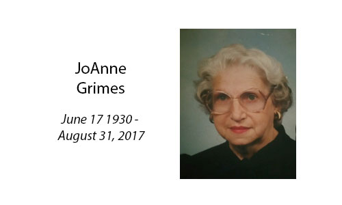 JoAnne Grimes, age 87 of Breckenridge, passed away Thursday, Aug. 31, 2017. The family will hold a memorial service at a later date. Arrangements have been entrusted to Morehart Mortuary.