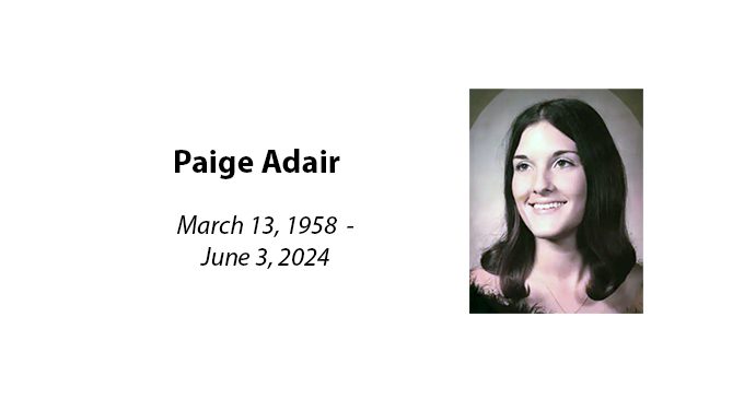 Paige Adair, age 66, of Breckenridge, passed away Monday, June 3, 2024. A graveside service will be held at 11 a.m. Monday, June 10, in the Breckenridge Cemetery with Dick