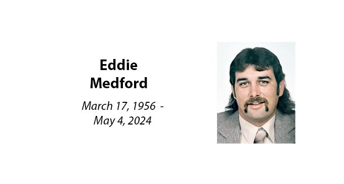 Eddie “Big Ed” Medford, at age 68, peacefully passed away on May 4, 2024, at his home. The family will welcome friends to his memorial service at 5:30 p.m. Friday,