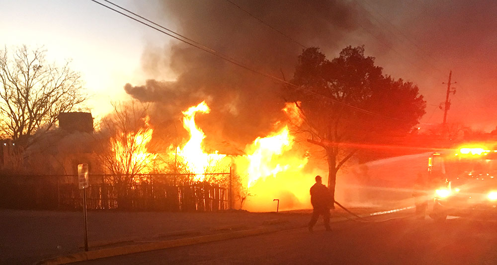 A local man was injured as he escaped his burning home next to Breckenridge High School this morning, Monday, Jan. 29. The house was mostly destroyed by the flames and