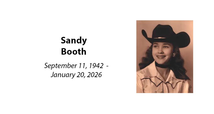 Sandy Booth, age 83, of Breckenridge, passed away on Tuesday, January 20, 2026. A memorial service will be held at 2 p.m. Friday, January 30, at Morehart Mortuary Chapel. Services have been entrusted to Morehart Mortuary. Sandra Sue “Sandy” Smallwood was born September 11, 1942, in Itasca, Texas, to parents,