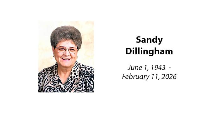 Sandra Jane (Sandy) Williams Dillingham, age 82, of Breckenridge, Texas, passed away on February 11 in Graham, Texas. Her memorial service at Melton-Kitchens Chapel of Memories will be held on Wednesday, February 18, beginning at 11 a.m. with Danny Riley officiating. Sandy was born June 1, 1943, in Breckenridge, to