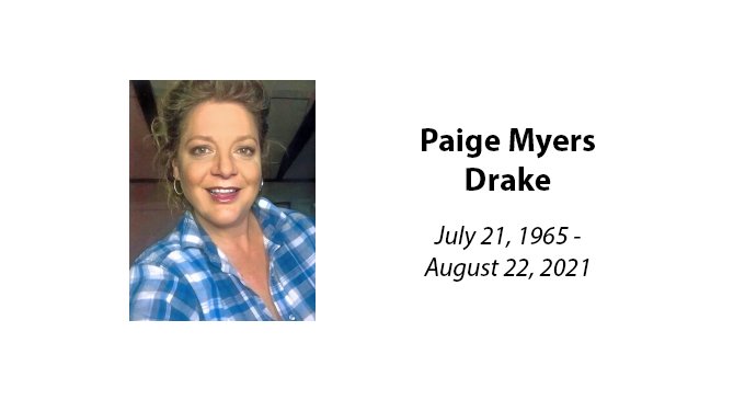 Turna Paige Drake, 56, of Breckenridge, went to be with the Lord on Sunday, August 22, 2021. A memorial service honoring her life will begin at 2:00 p.m. on Saturday, August 28, 2021, in the Chapel of Memories at Melton-Kitchens Funeral Home, with Ruben Castaneda officiating. Paige was born in