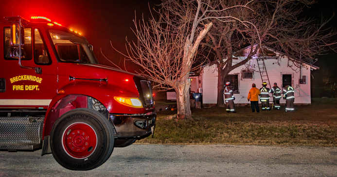 The Breckenridge Fire Department responded to a structure fire in the 100 block of County Road 227 shortly after 6 p.m this evening, Saturday, Jan. 3.